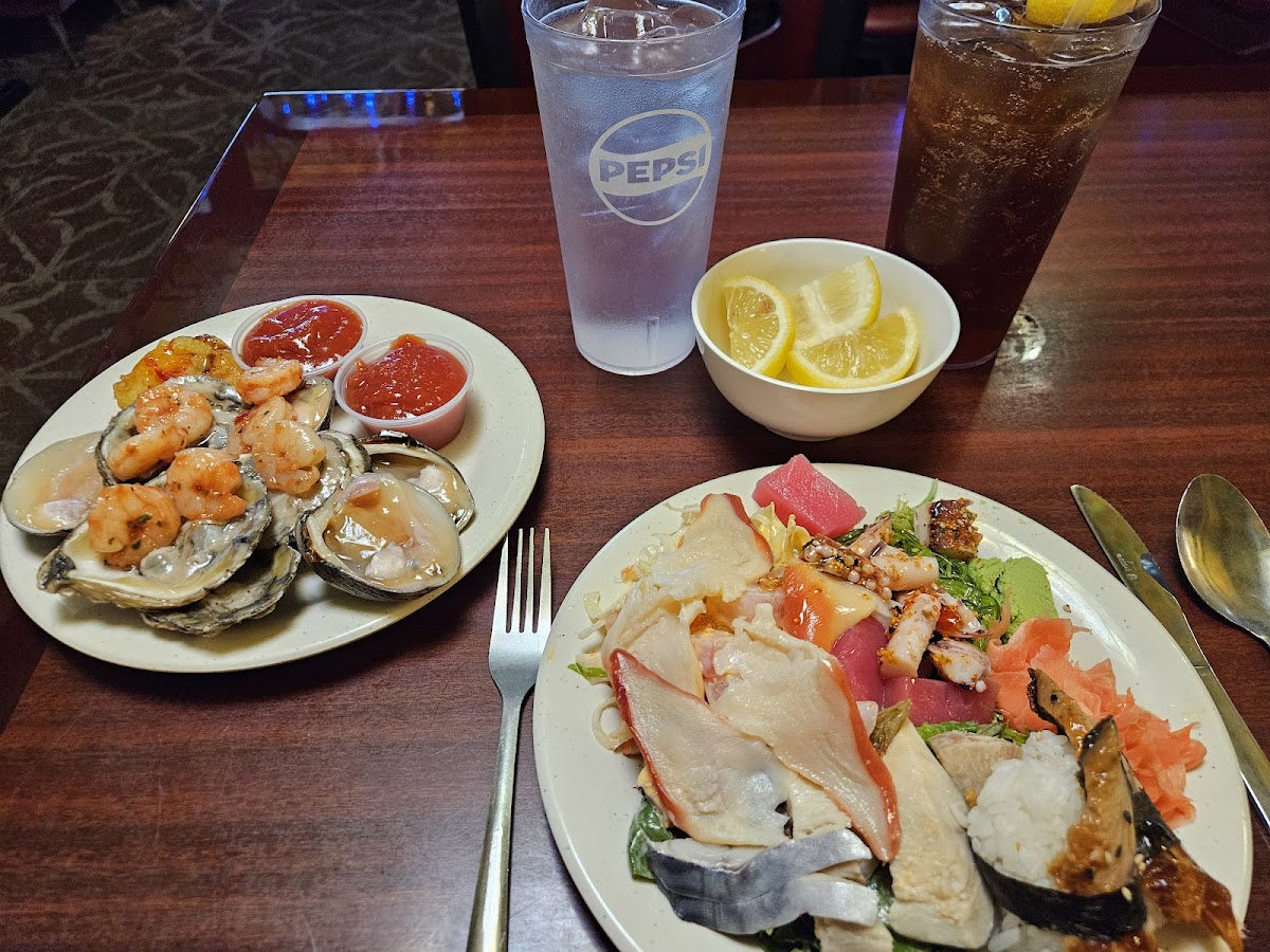 I heard about this place from a family member. The food was fully cooked and delicious. There is SO MUCH to choose from! I had the crawfish, chicken, multiple different kinds of sushi, white fish, and fresh cut fruit. The atmosphere was great and the same with the service!